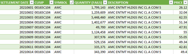 The recent ape theory is that FTD data is the key for timing short squeezes based on Reg SHO closeout requirements. But that theory completely neglects that the daily quantity reported is an aggregate of existing and new fails. AMC was trading on average half a billion shares per day, even an aggregate of 5 million fails would not cause a short squeeze.